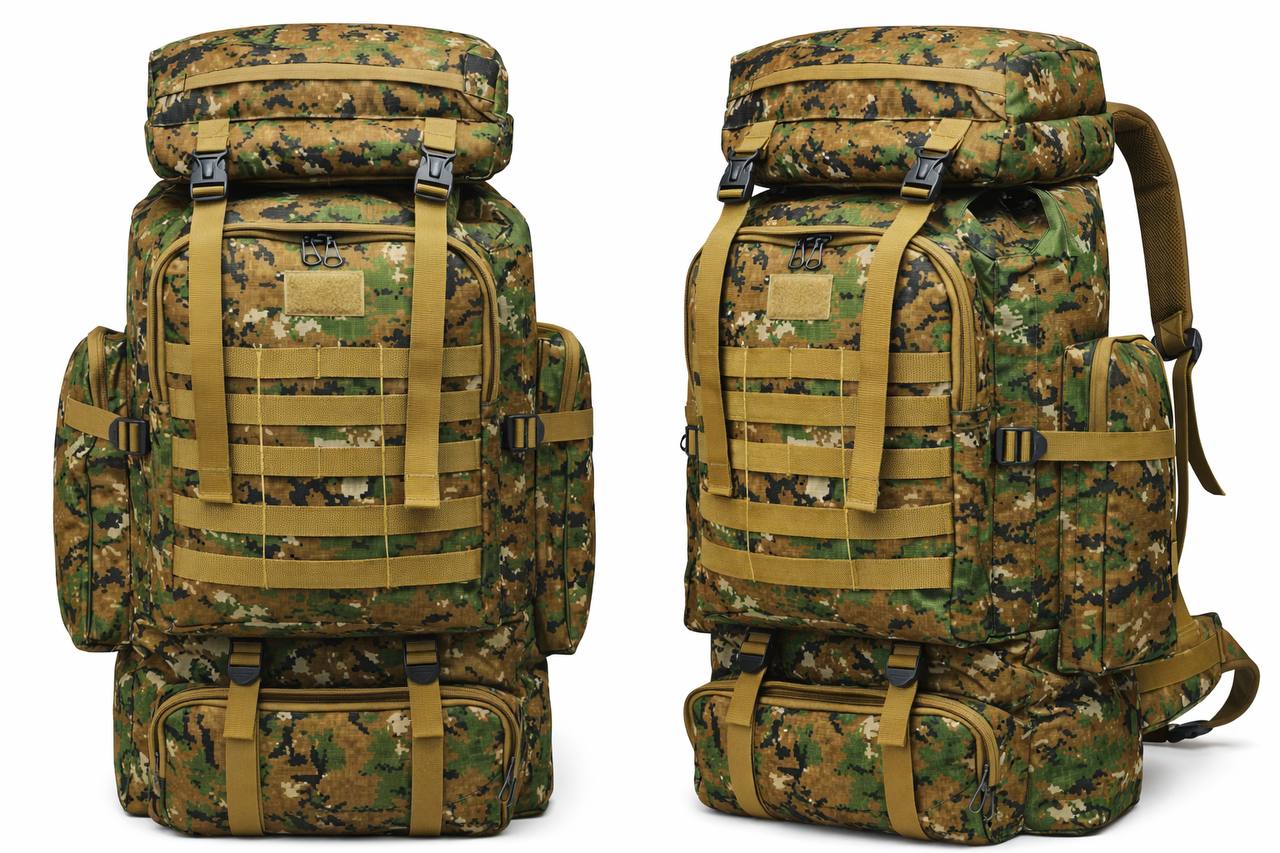 - -80-літровий похідний рюкзак з міцними пряжками, гладкими блискавками та подвійним рядком